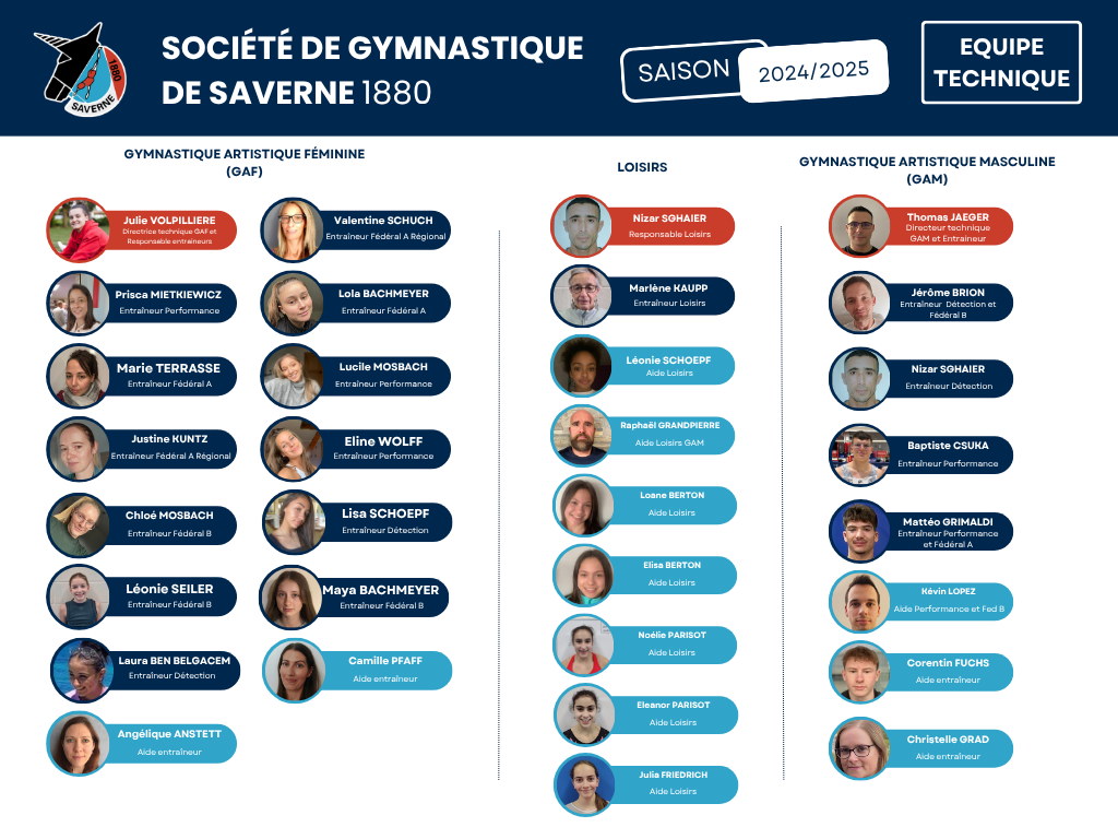 Le club SG Saverne est une association affiliée à la Fédération Française de Gymnastique (FFG), certifiée Quali’Club Bronze par la FFG depuis 2021.
